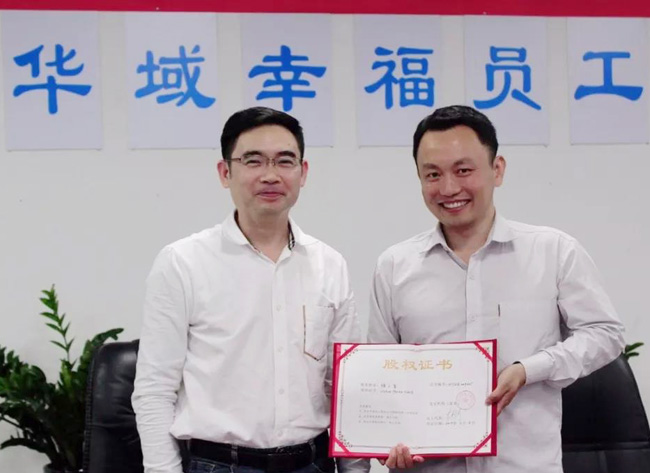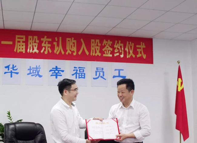 簽約儀式中,董事長易新河同志一一與每位股東親筆簽訂股權(quán)協(xié)議,并親自為每位華域的股東頒發(fā)股權(quán)證書。易董的這份真誠,令在場的股東們激動不已。